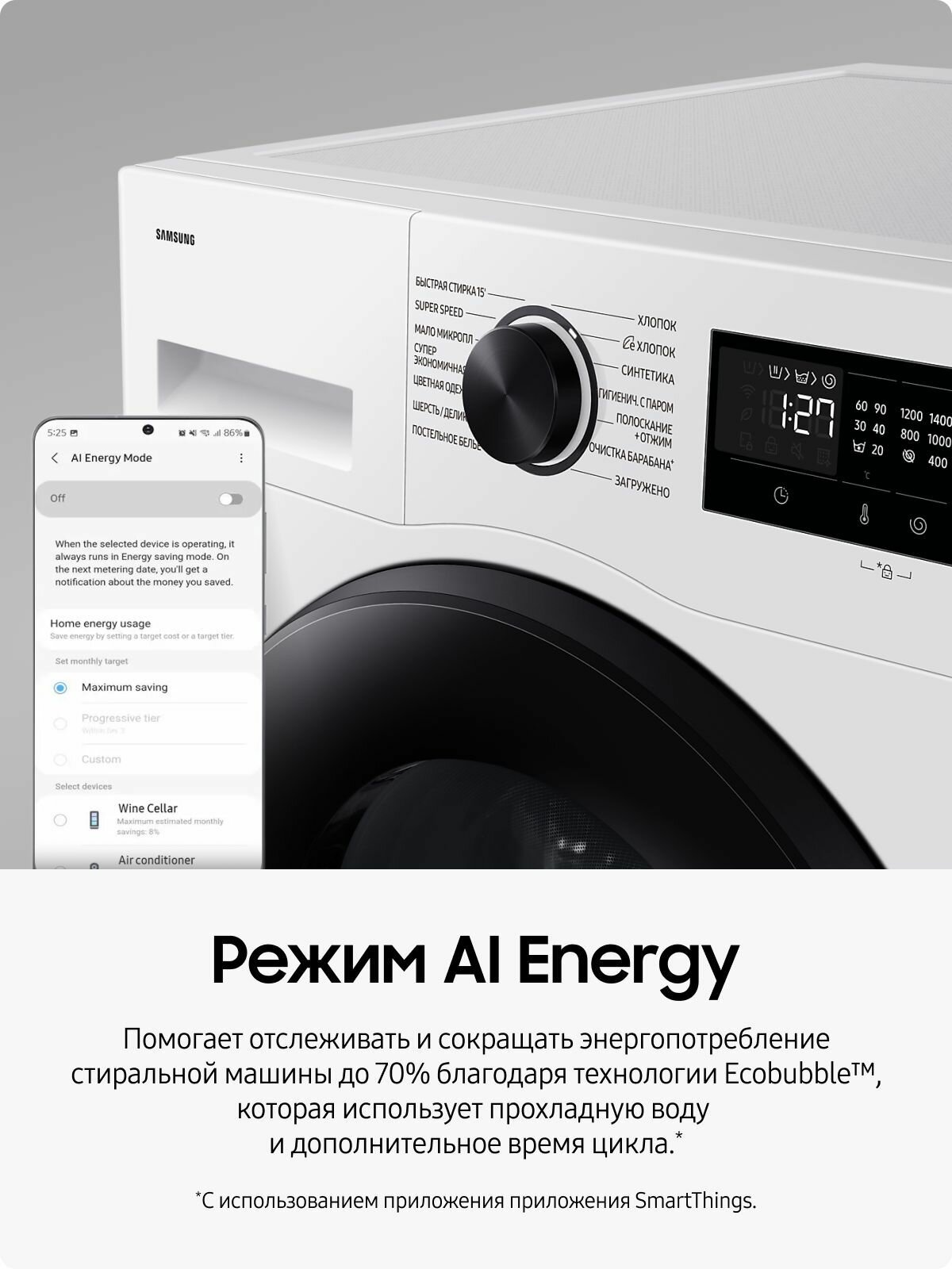 СохранитьCтиральная машина Samsung WW11CGC04CAELP, 11 кг, с увеличенным объемом барабана, электронным управлением, инверторным мотором, обработкой паром, системой управления на базе ИИ, белая / черная интересное: