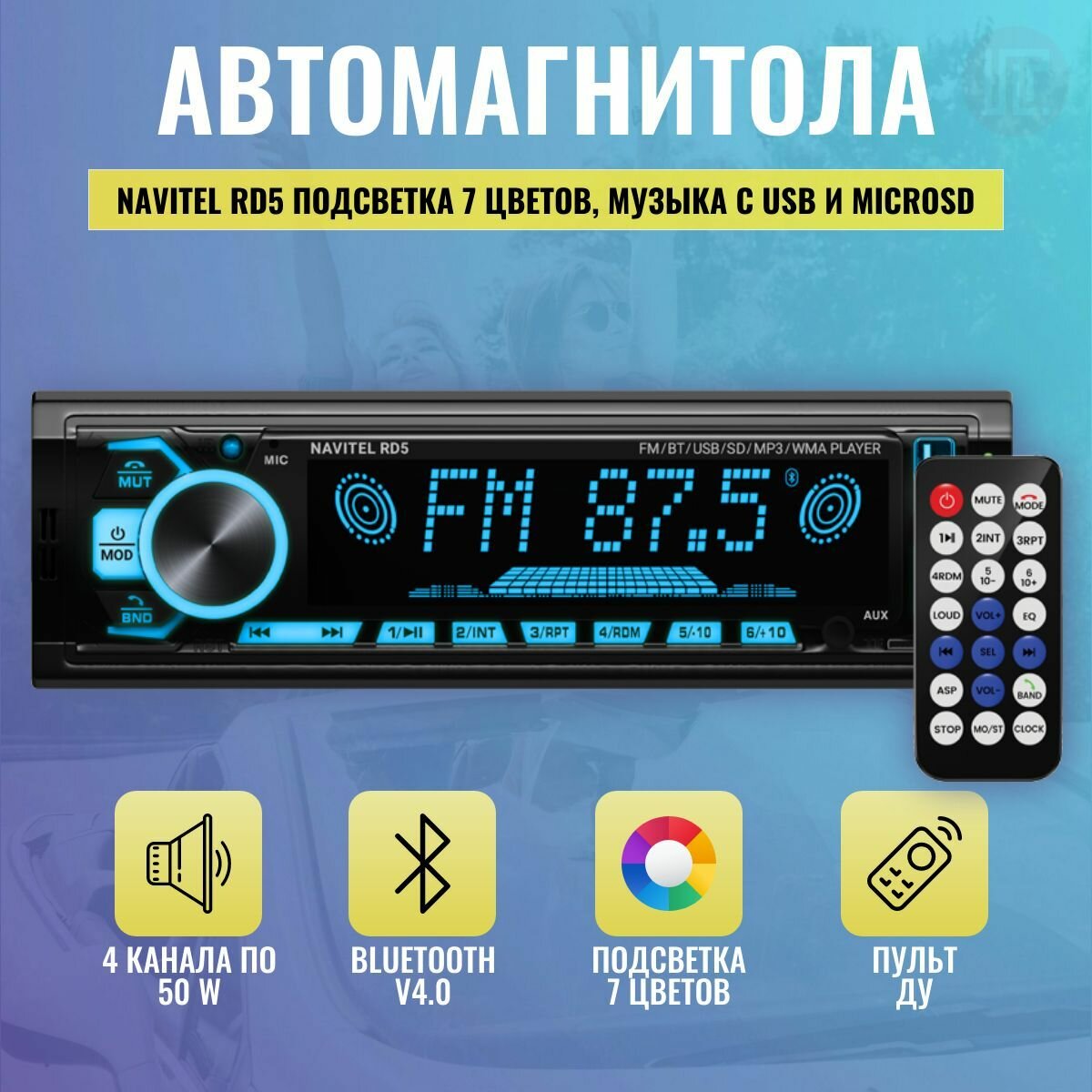 Автомагнитола Navitel RD5 1DIN 4x50Вт ПДУ