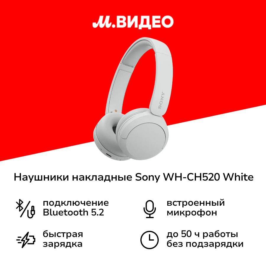 Купить Sony WH-CH520 white наушники беспроводные накладные