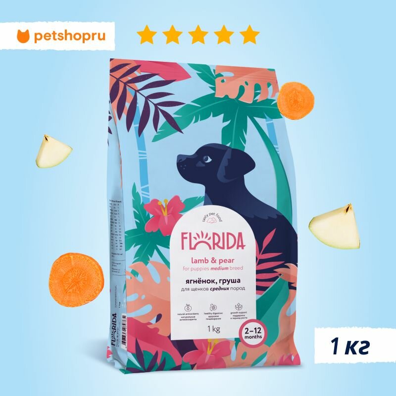 FLORIDA Сухой корм для щенков средних пород с ягненком и грушей, Medium Puppy Lamb, 1 кг интересное: