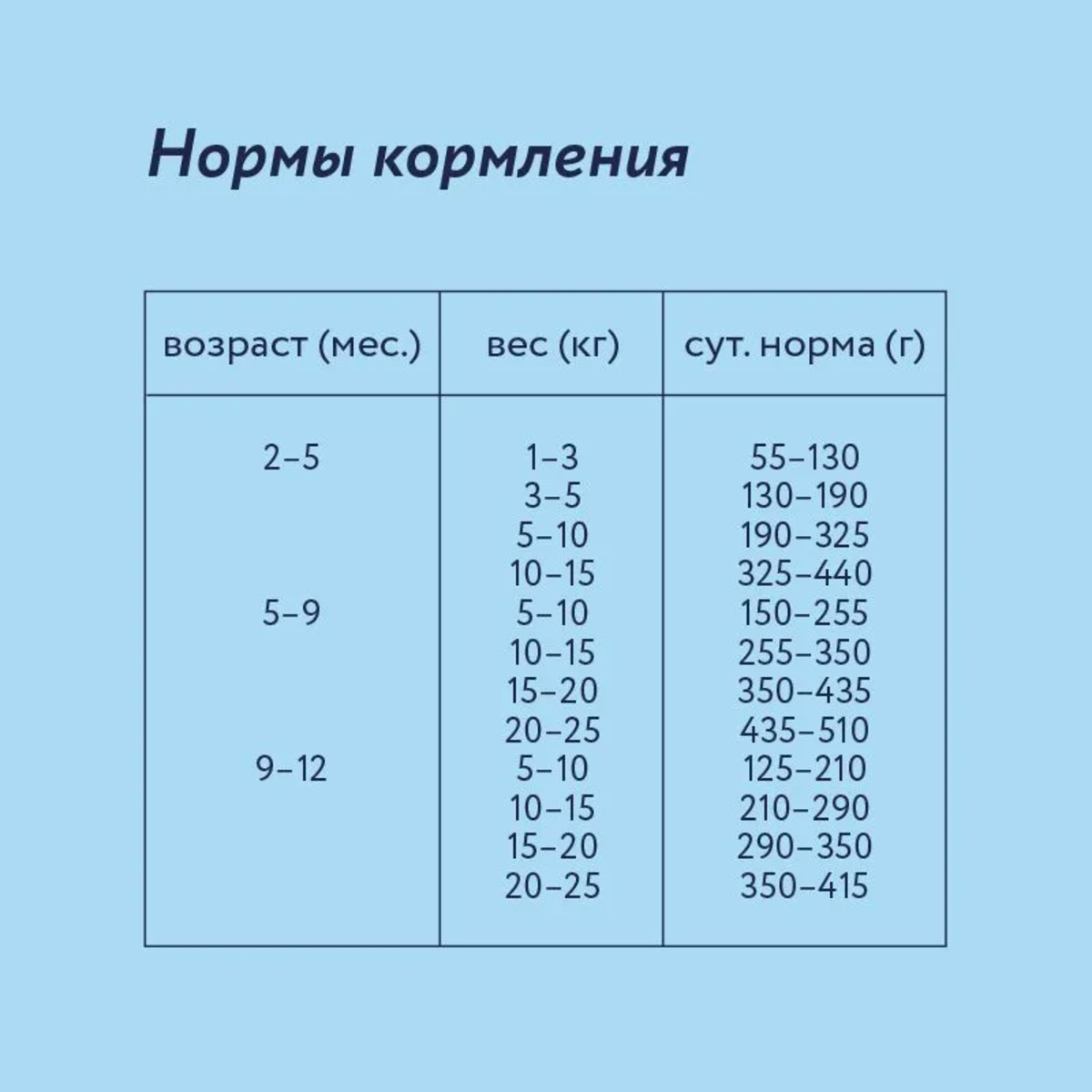 | Дозировка | Суточная норма может варьироваться в зависимости от возраста, комплекции и уровня активности вашего питомца. Не забывайте своевременно пополнять миску свежей питьевой водой. |