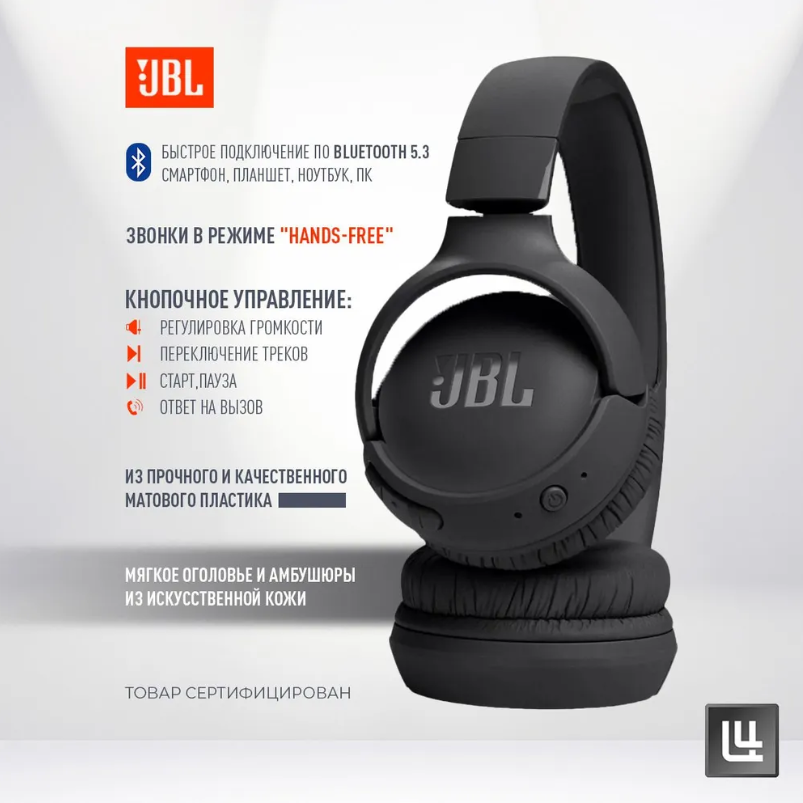 Наушники беспроводные JBL Tune 520BT, с Bluetooth, USB Type - C, Black, наушники jbl