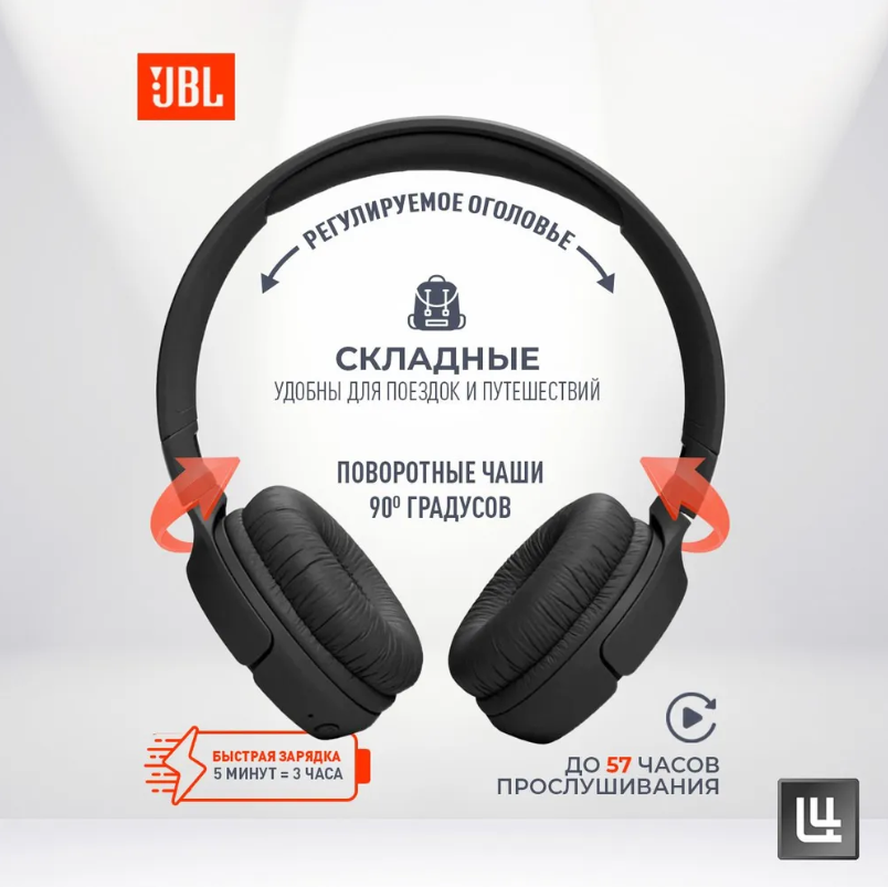 Наушники JBL Tune 520BT, накладные, IPX5, 57 ч автономности, Bluetooth 5.3
