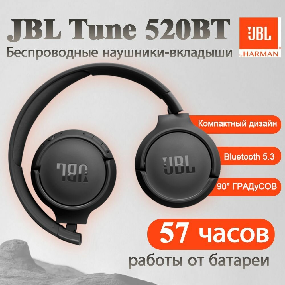 Наушники беспроводные JBL Tune 520BT, с Bluetooth, USB Type - C, Black, наушники jbl