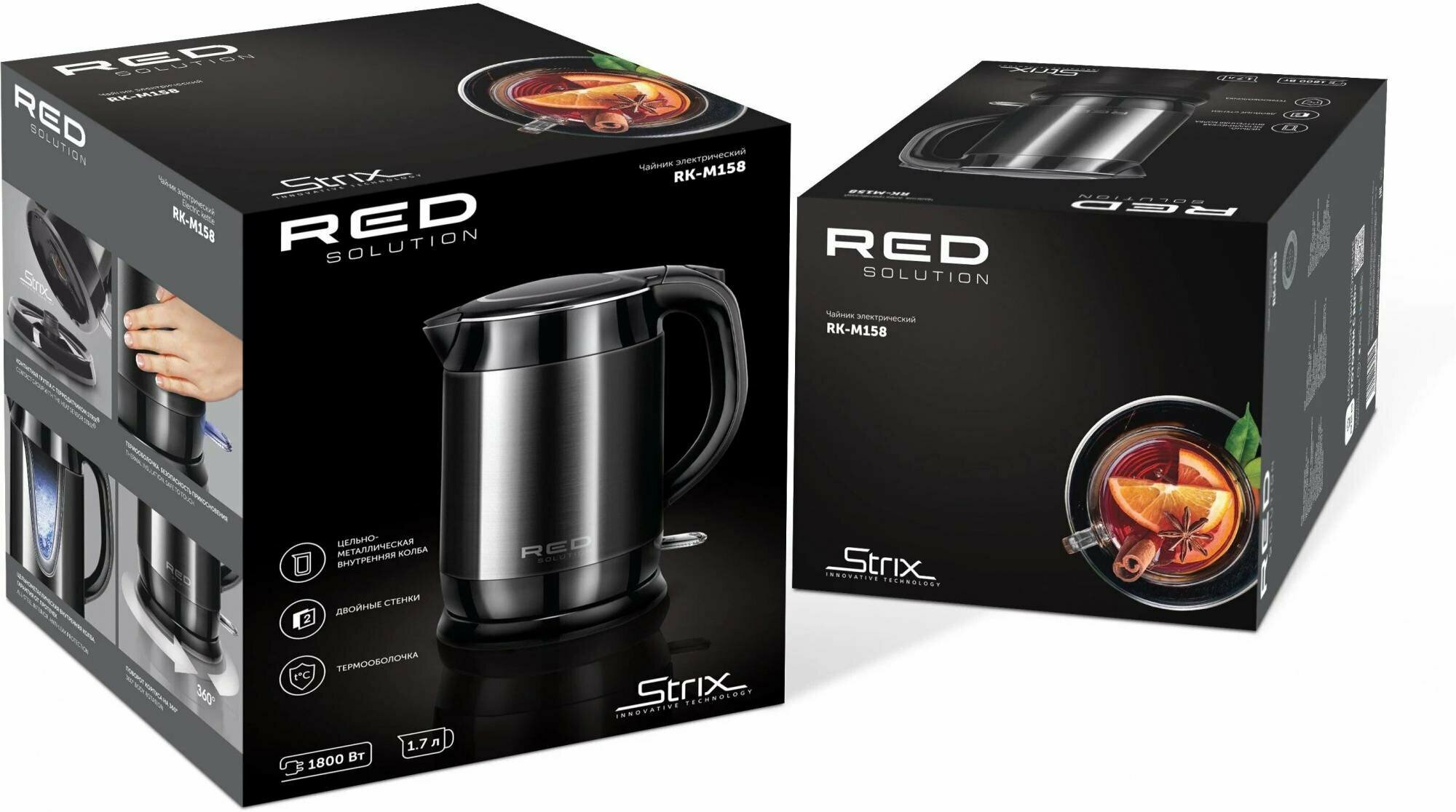 Чайник электрический Red Solution RK-M158 1.7л. 1800Вт черный корпус: металл/пластик