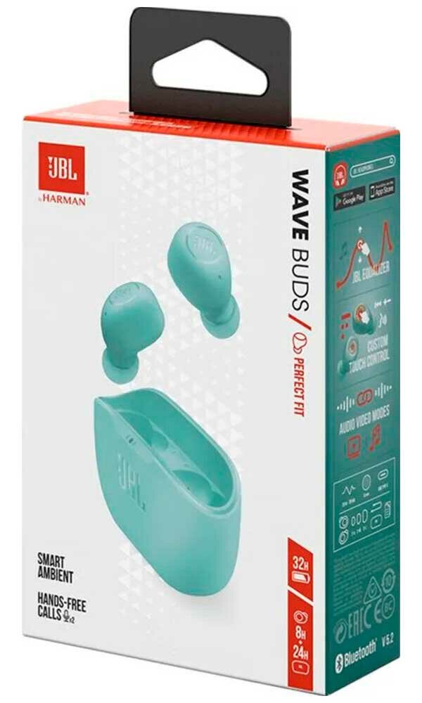 Наушники JBL Wave Buds, Bluetooth, внутриканальные, мятный [jblwbudsmit]