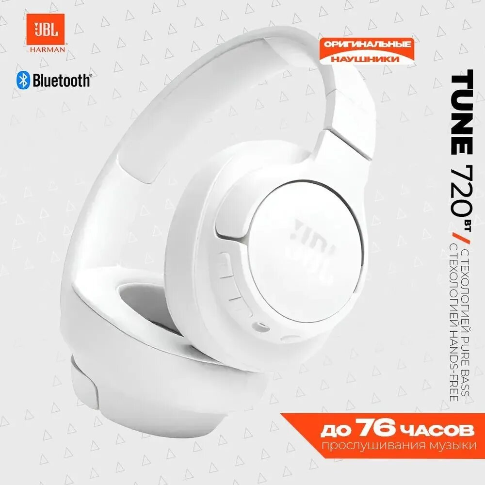 Наушники JBL Tune 720 BT, 3.5 мм/Bluetooth, мониторные, белый [jblt720btwht]