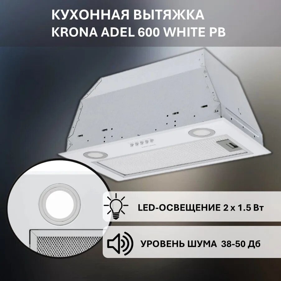 ADEL 600 WHITE PB вытяжка кухонная интересное: