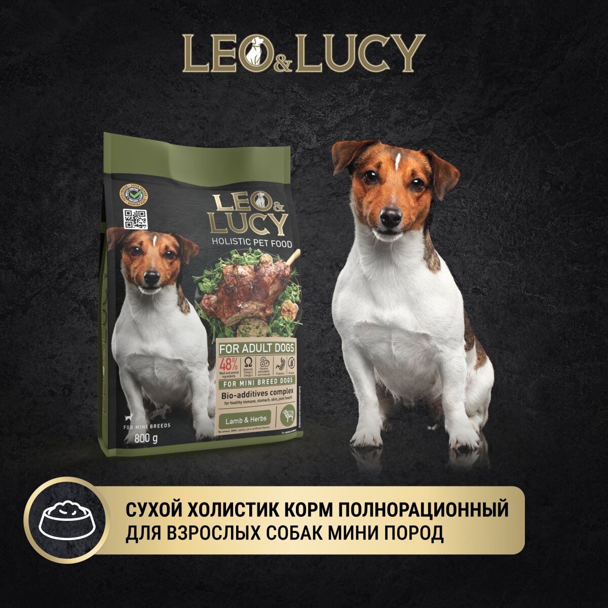 Купить LEO&LUCY Сухой холистик корм для собак мини пород с ягненком, травами и биодобавками, 800г 0.8 кг