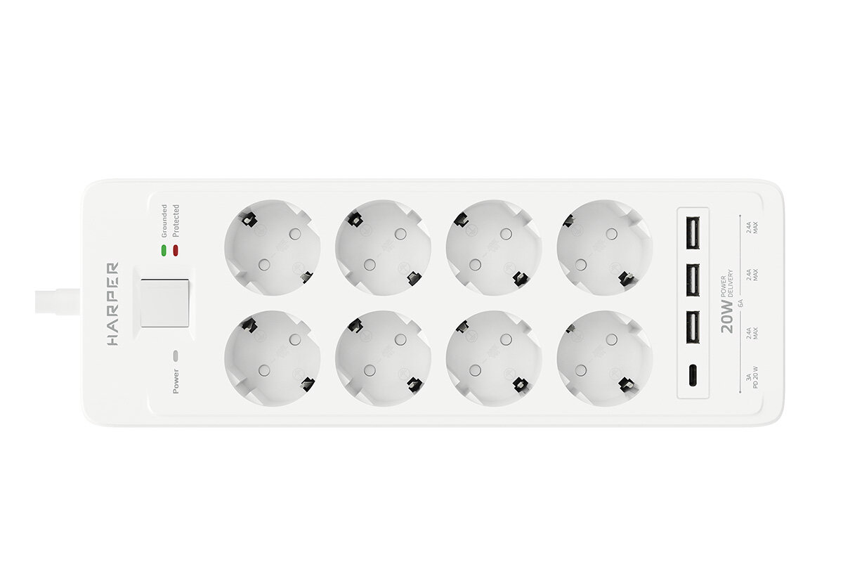 Сетевой фильтр HARPER UCH-650 White PD3.0 8р/5м/4кВт/16А/3xUSB (H00003209), 2135514 интересное: