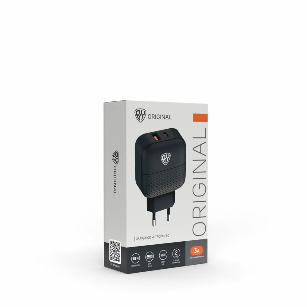 Сетевое зарядное устройство BY Модерн, Быстрая зарядка QC3.0+TYPE-C PD, 3А, 12В, черный