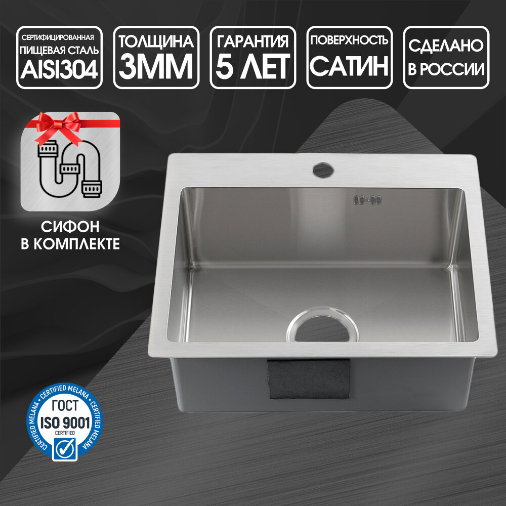 Мойка R5050W MELANA ProfLine 3,0/200 сатин врезная квадратная R5050W сатин