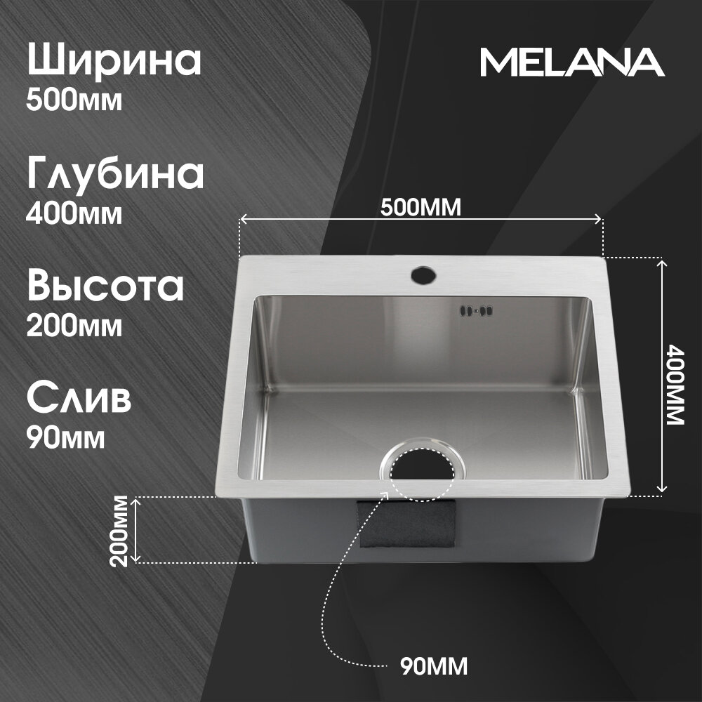 Мойка для кухни Melana ProfLine 500х400х200 мм врезная прямоугольная с сифоном сталь (R5040H)