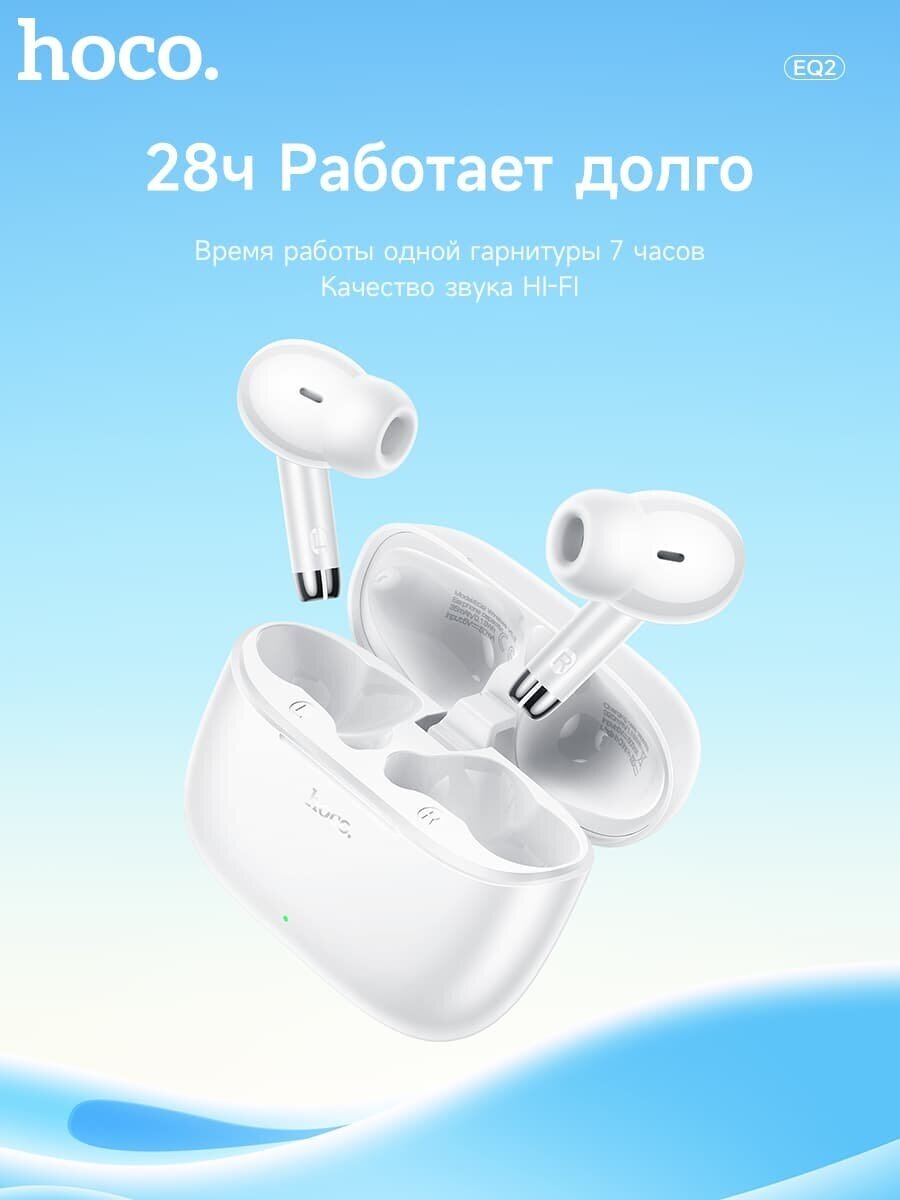 Наушники Hoco Eq2, Tws, беспроводные, вакуумные, BT 5.3, 40/320 мАч, белые Hoco 9881946