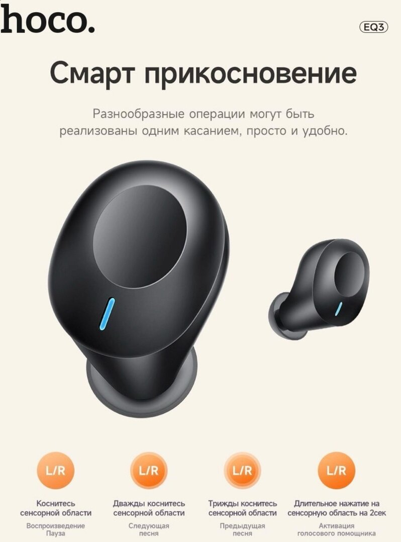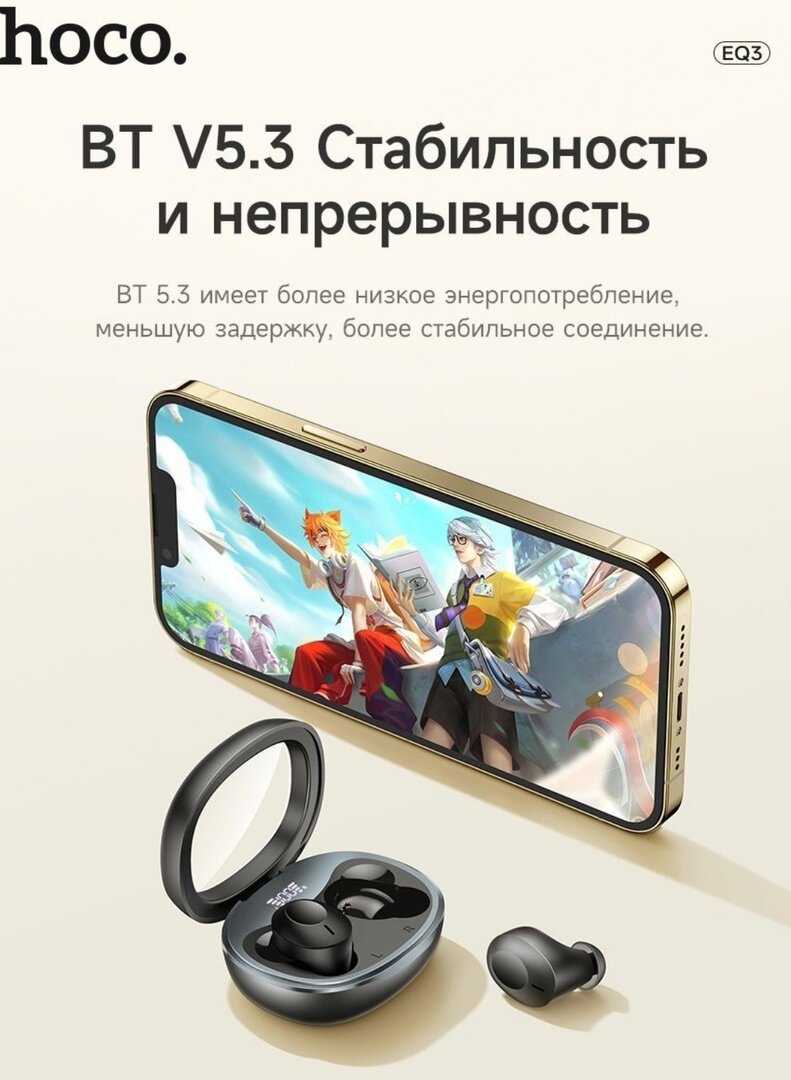 Наушники Hoco Eq3, Tws, беспроводные, вакуумные, BT 5.3, 40/300 мАч, чёрные Hoco 9881943