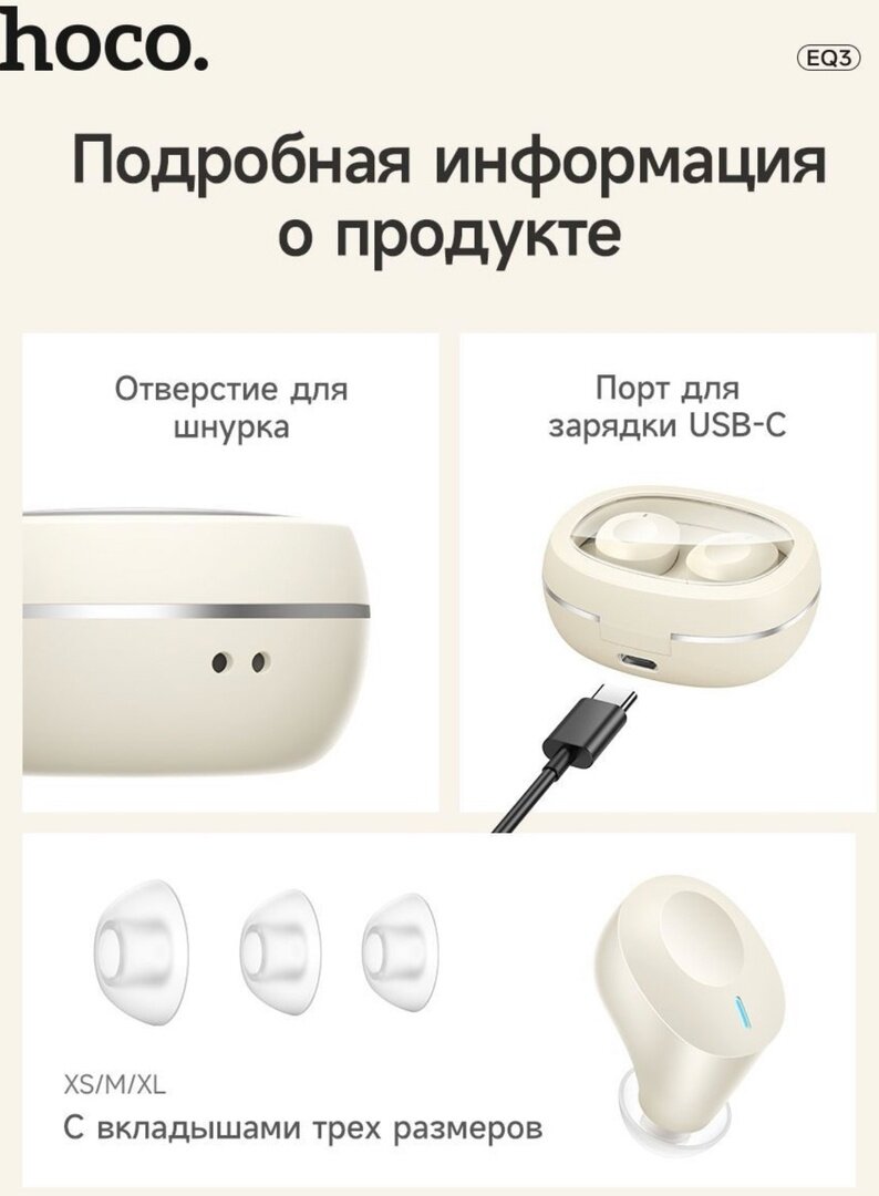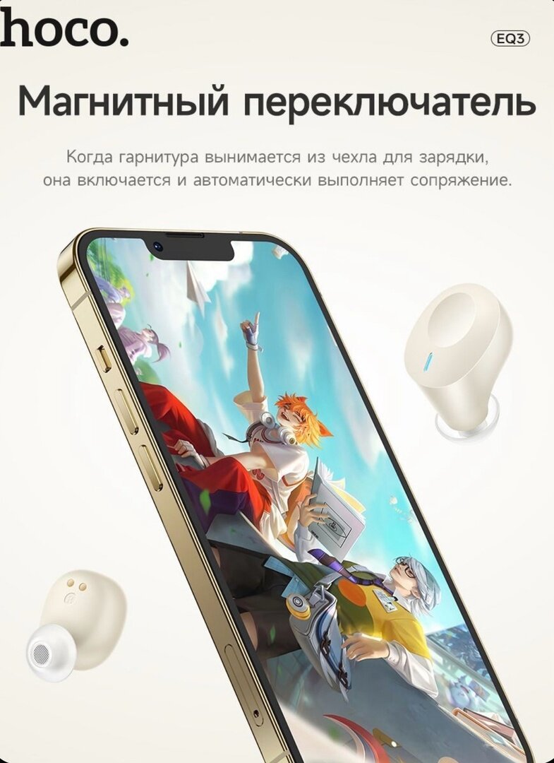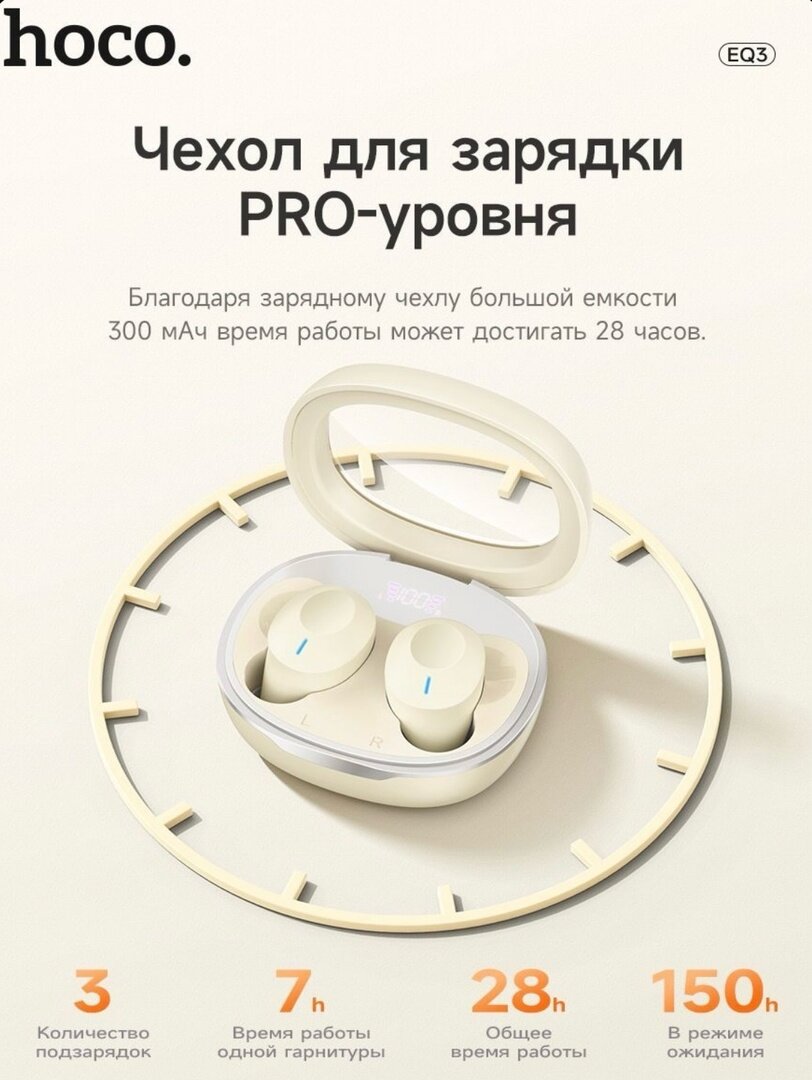 Беспроводные TWS наушники Hoco EQ3 Smart с дисплеем молочно-белые