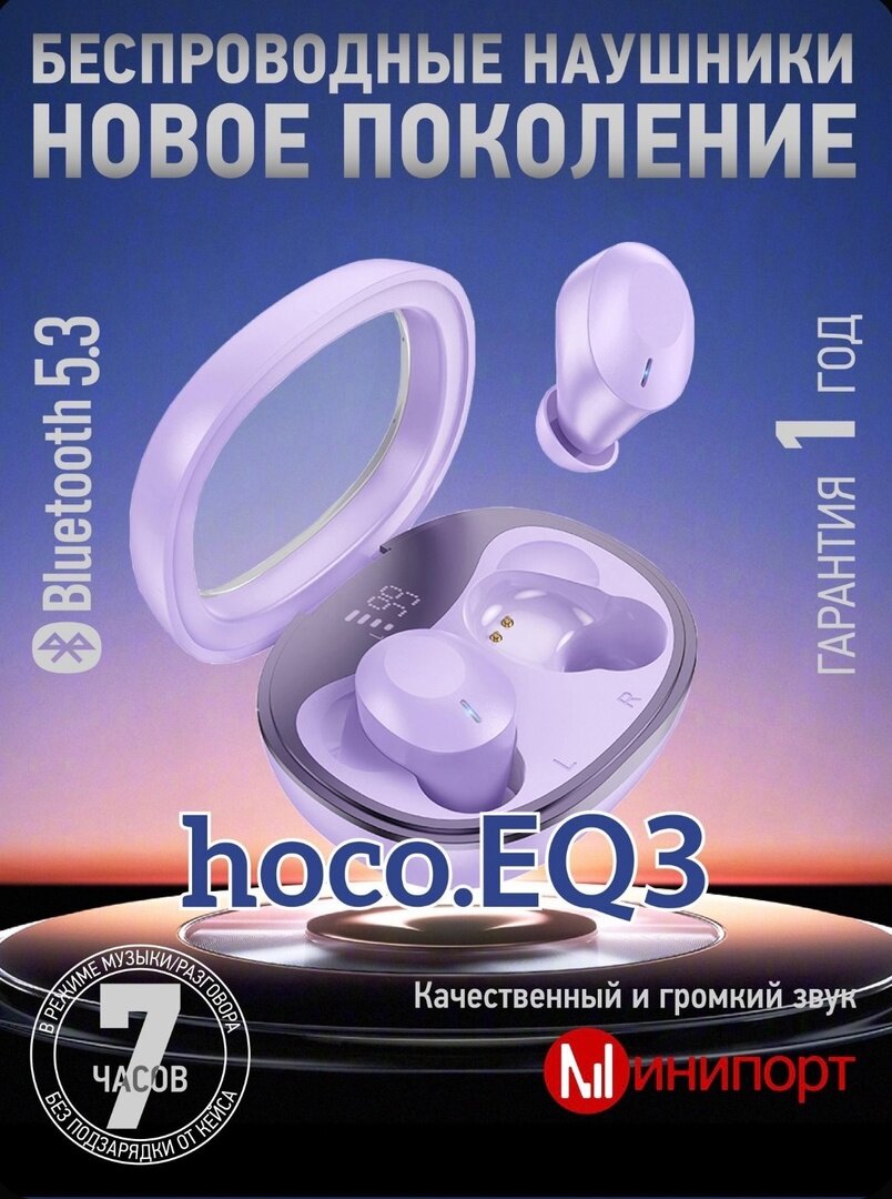 Купить Беспроводные наушники EQ3, HOCO, капельки, фиолетовый