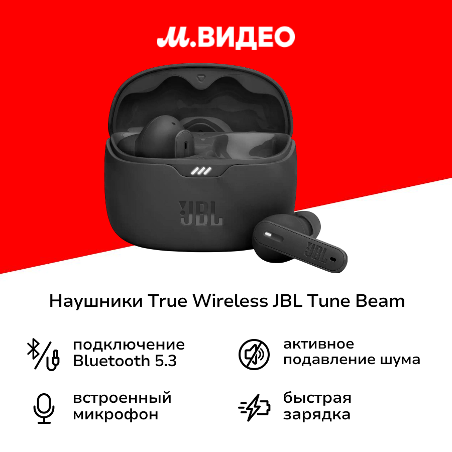 | Комплектация | наушники JBL Tune Beam, х чехол для зарядки, зарядный кабель USB Type-C, 3 размера ушных вкладышей |