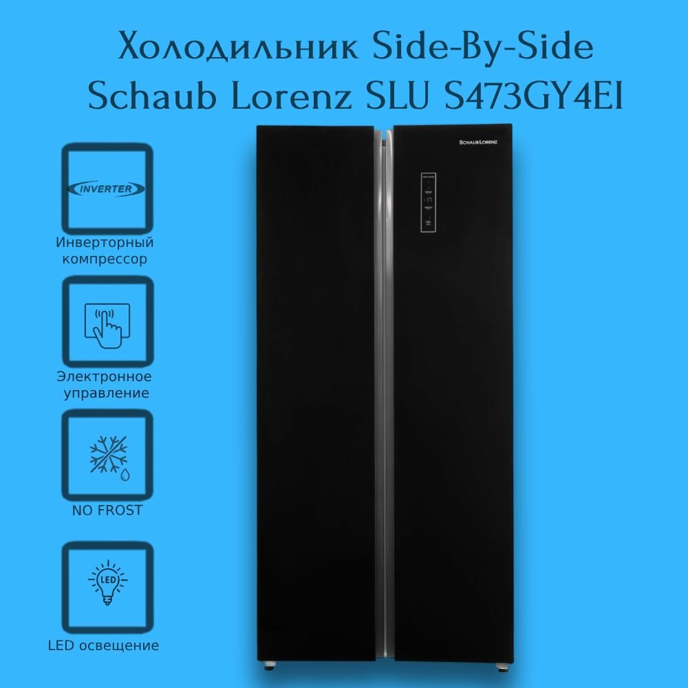 Холодильник Side-by-Side отдельностоящий Schaub Lorenz SLU S473GY4EI, высота 178.5 см, 473 л, класс A+, черное стекло, Китай интересное: