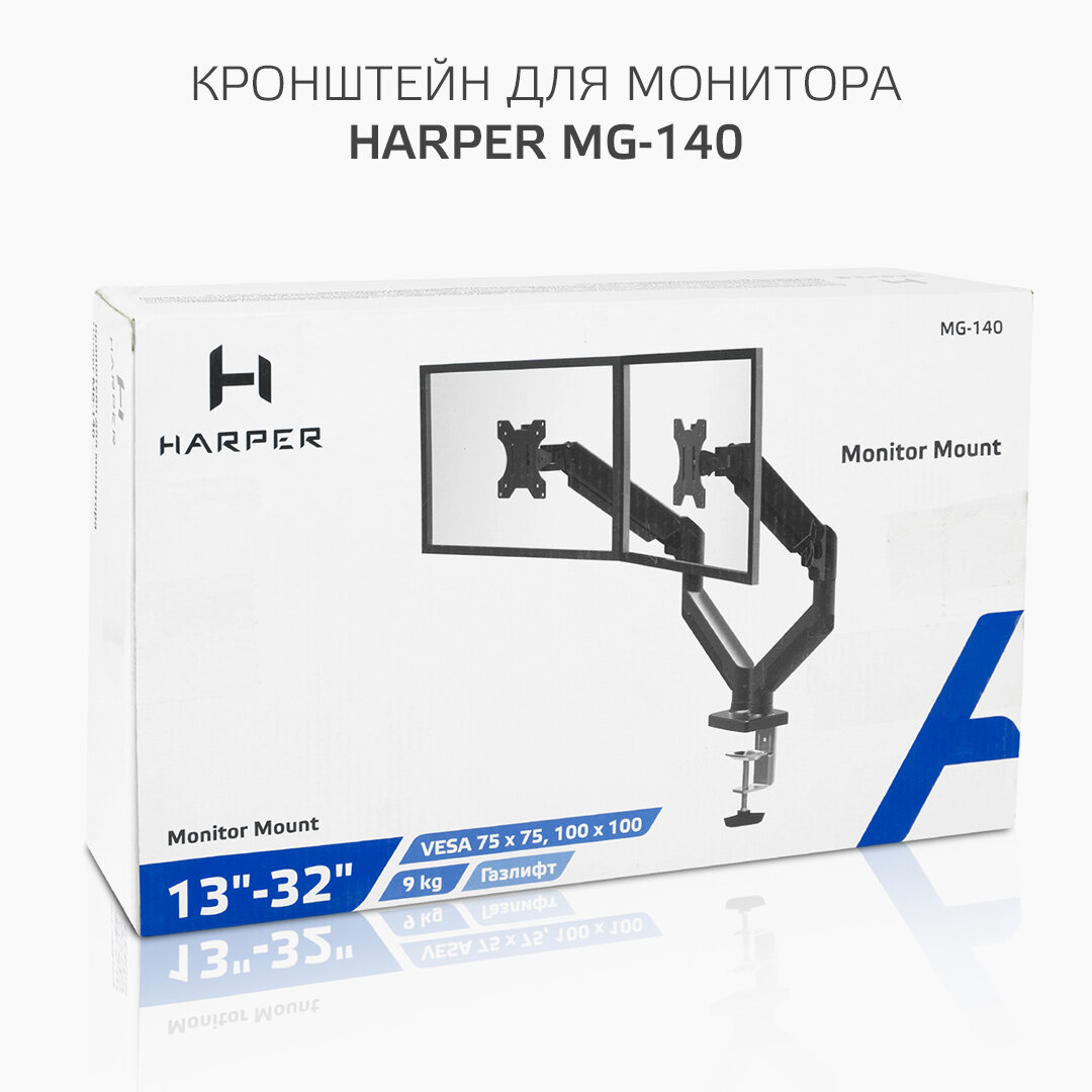 Купить Кронштейн для двух мониторов, газлифт Harper MG-140, от 13"-32", черный