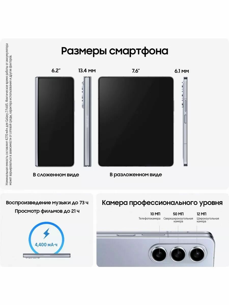 СохранитьСмартфон Samsung Galaxy Z Fold5 12/256 ГБ, nano SIM + eSIM, голубой интересное: