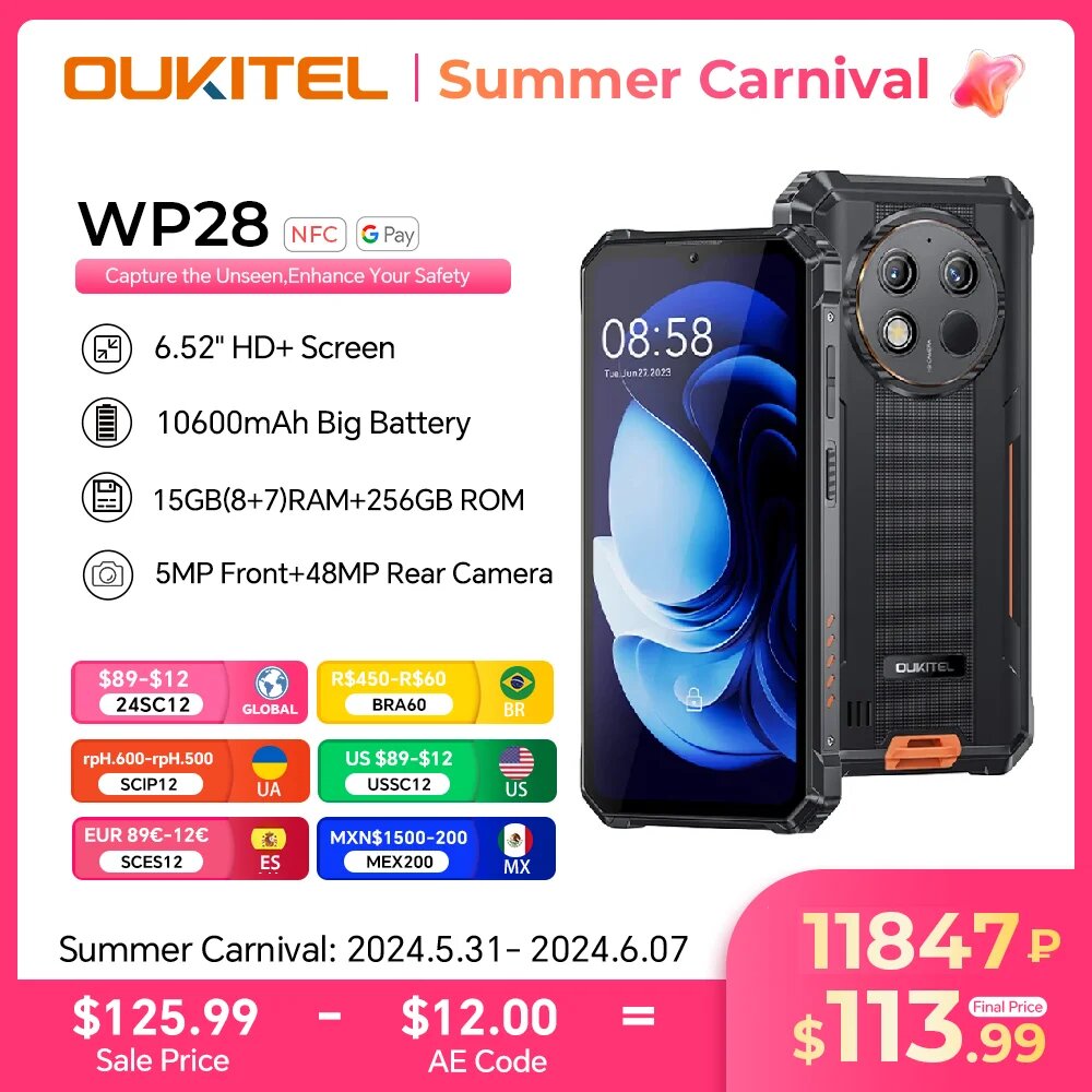 Смартфон OUKITEL WP28 8/256 ГБ, 2 nano SIM, черный