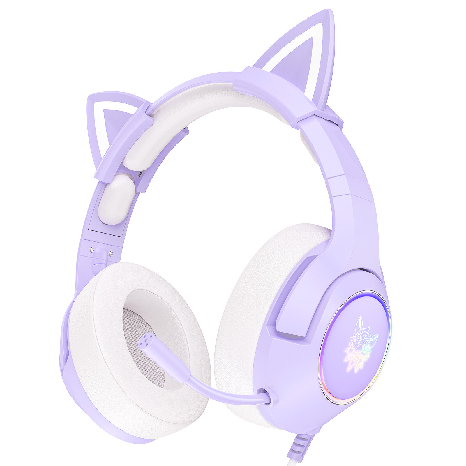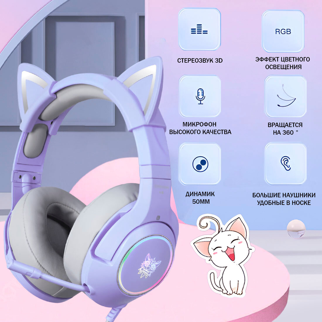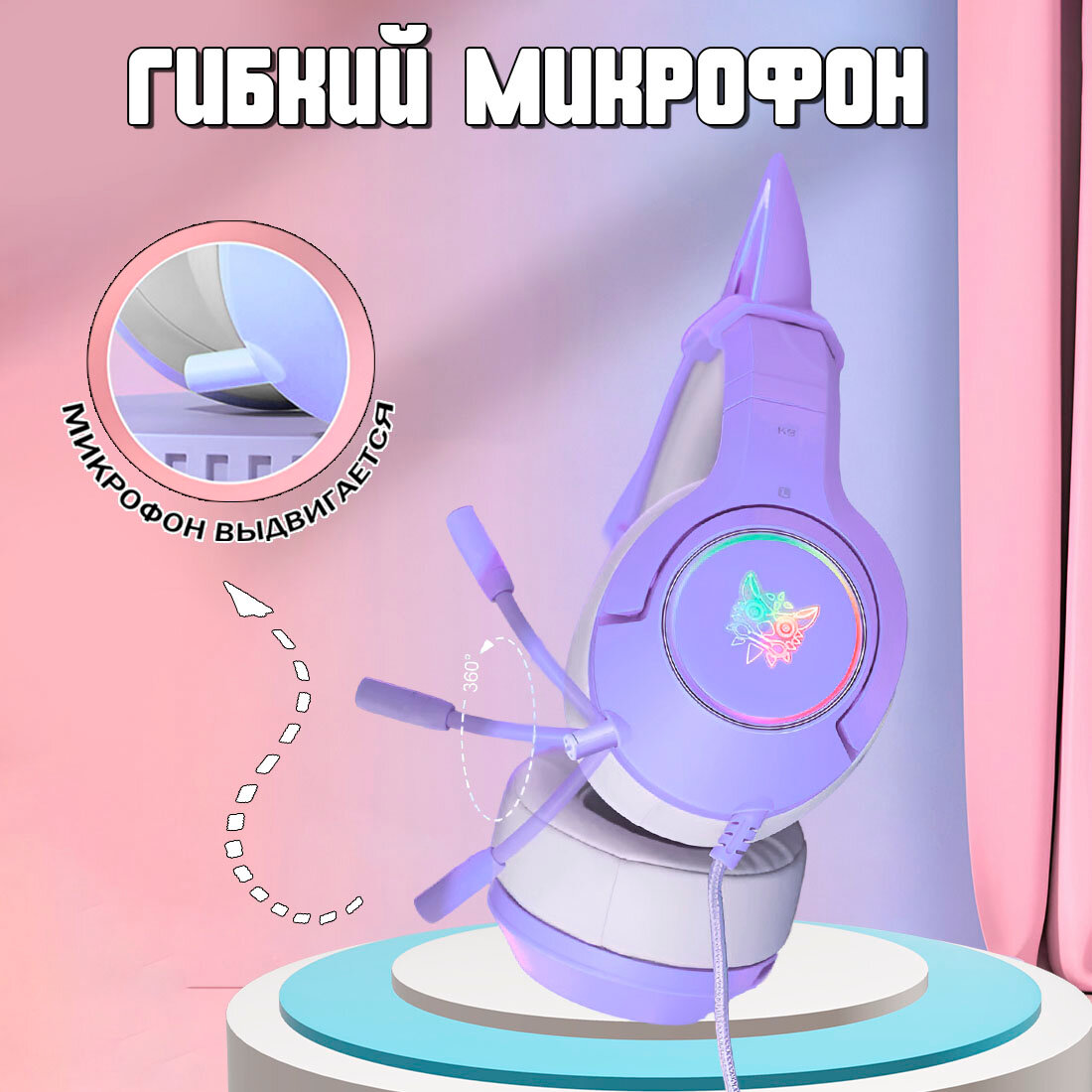 Купить Игровые проводные наушники ONIKUMA K9 с RGB подсветкой и съемными ушками, Фиолетовые