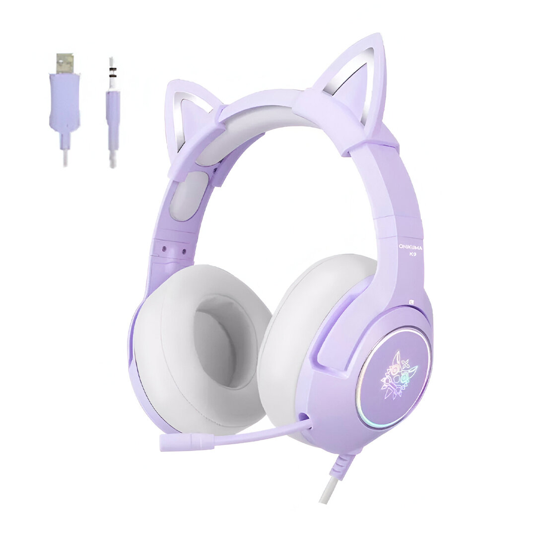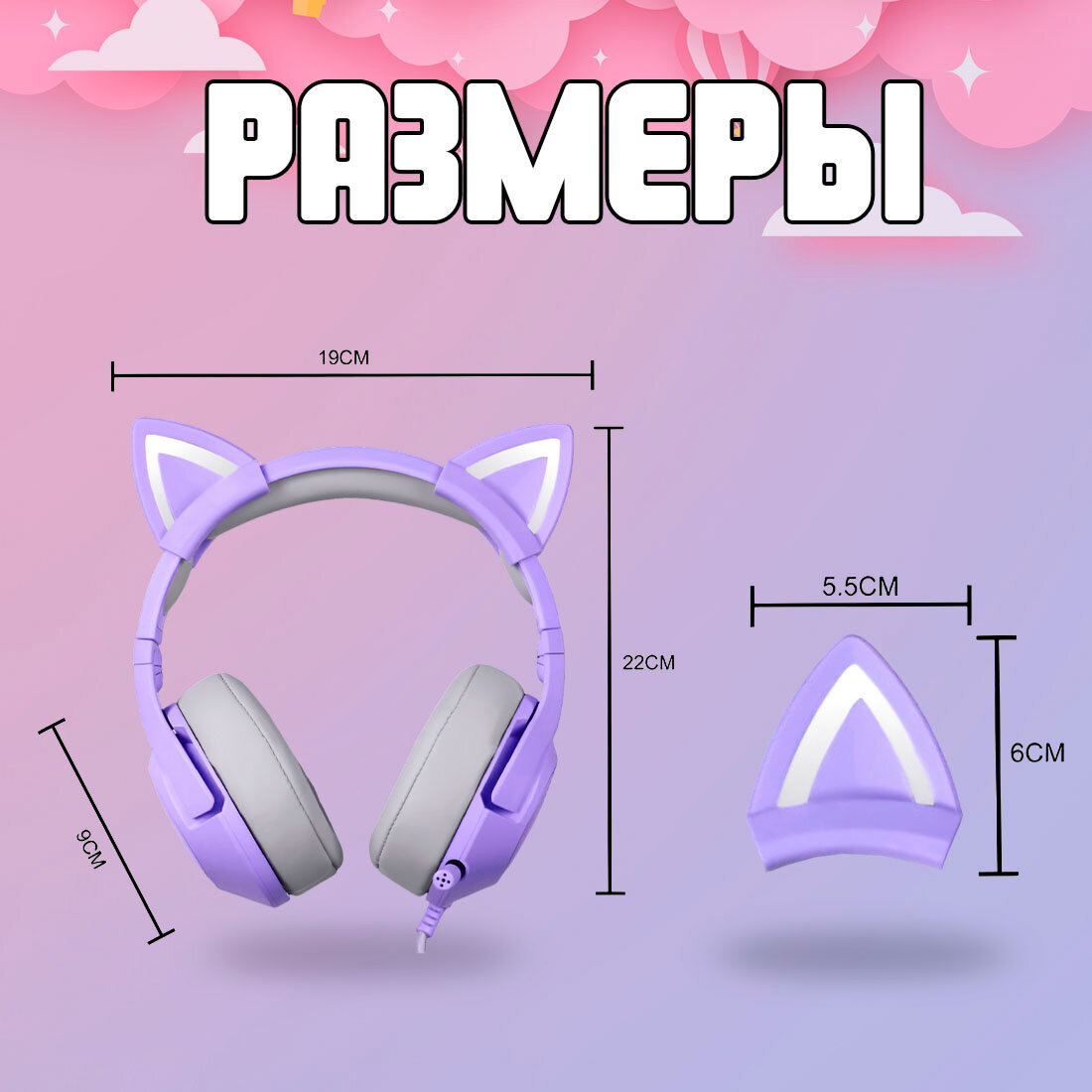 Игровые наушники Onikuma K9-PB Lilac Cat розово-серые с кошачьими ушками и подсветкой