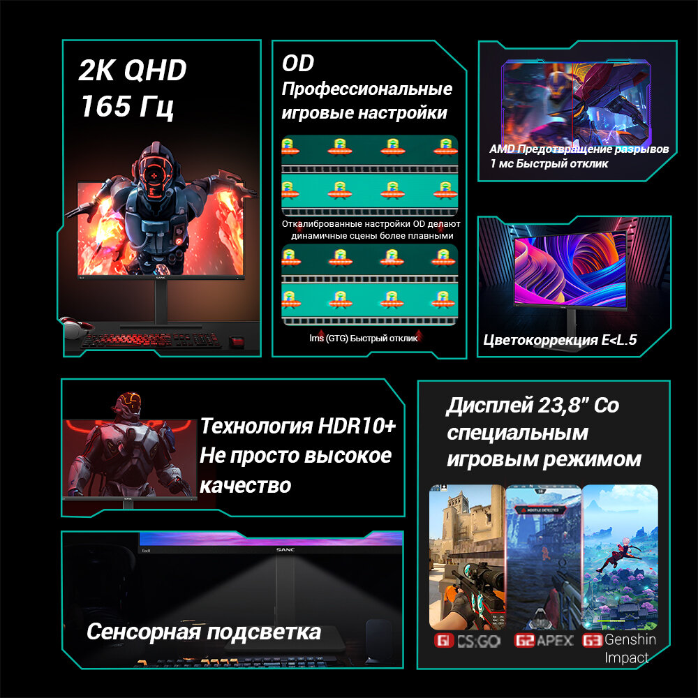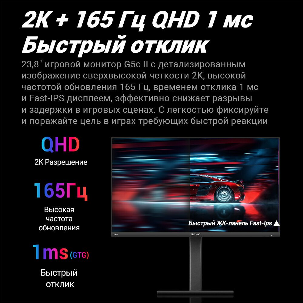 Игровой монитор Sanc G5C II 23,1 дюйма 2К+165Гц, 1мс, IPS, 2560х1440, 178/178, Free