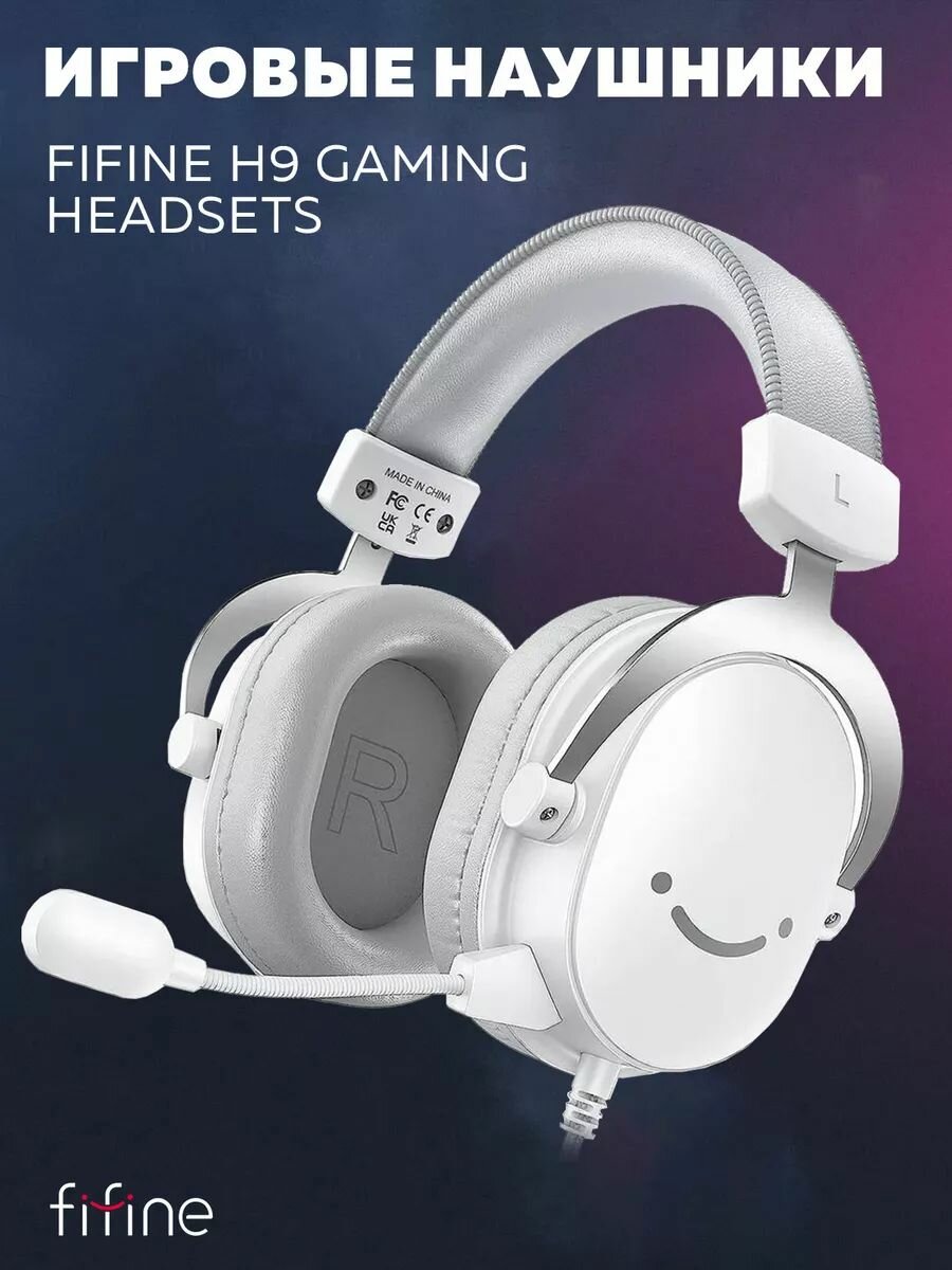 FIFINE Ampligame H9W проводные кожаные полноразмерные игровая гарнитура, Белый