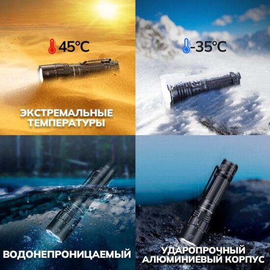 | Особенности | USB-зарядка / влагозащита / дальний свет / индикация заряда / кабель USB / клипса для крепления / магнитное крепление / режим турбо / сигнальный режим / стробоскоп / ударопрочный корпус / холодный белый свет / чехол / шнурок для переноски / экономичный режим / Механическая регулировка яркости / Полная стабилизация яркости |