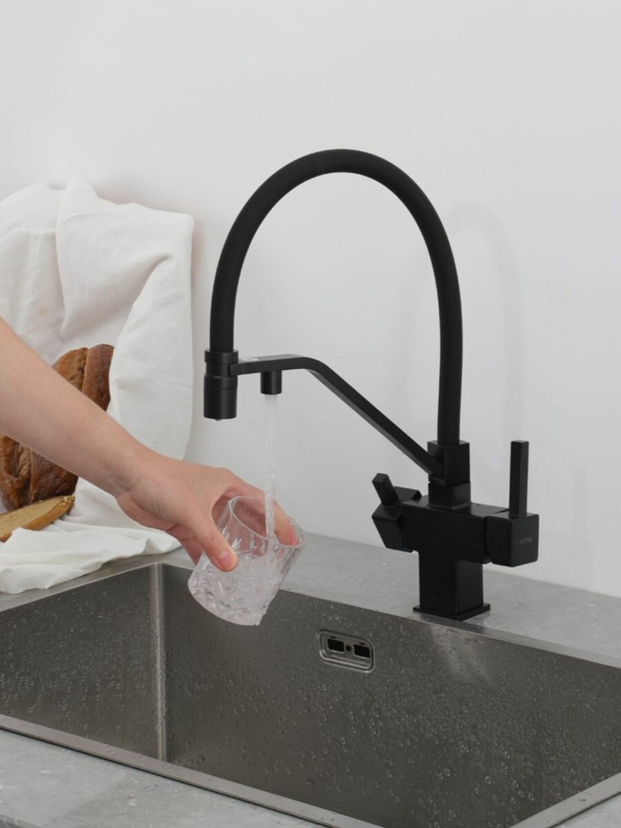 Смеситель для кухни Gappo G4395-66 с подключением фильтра, черный
