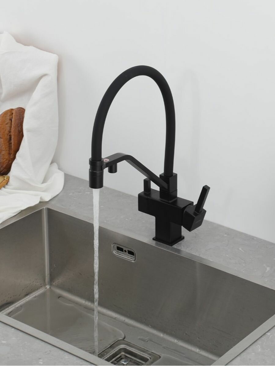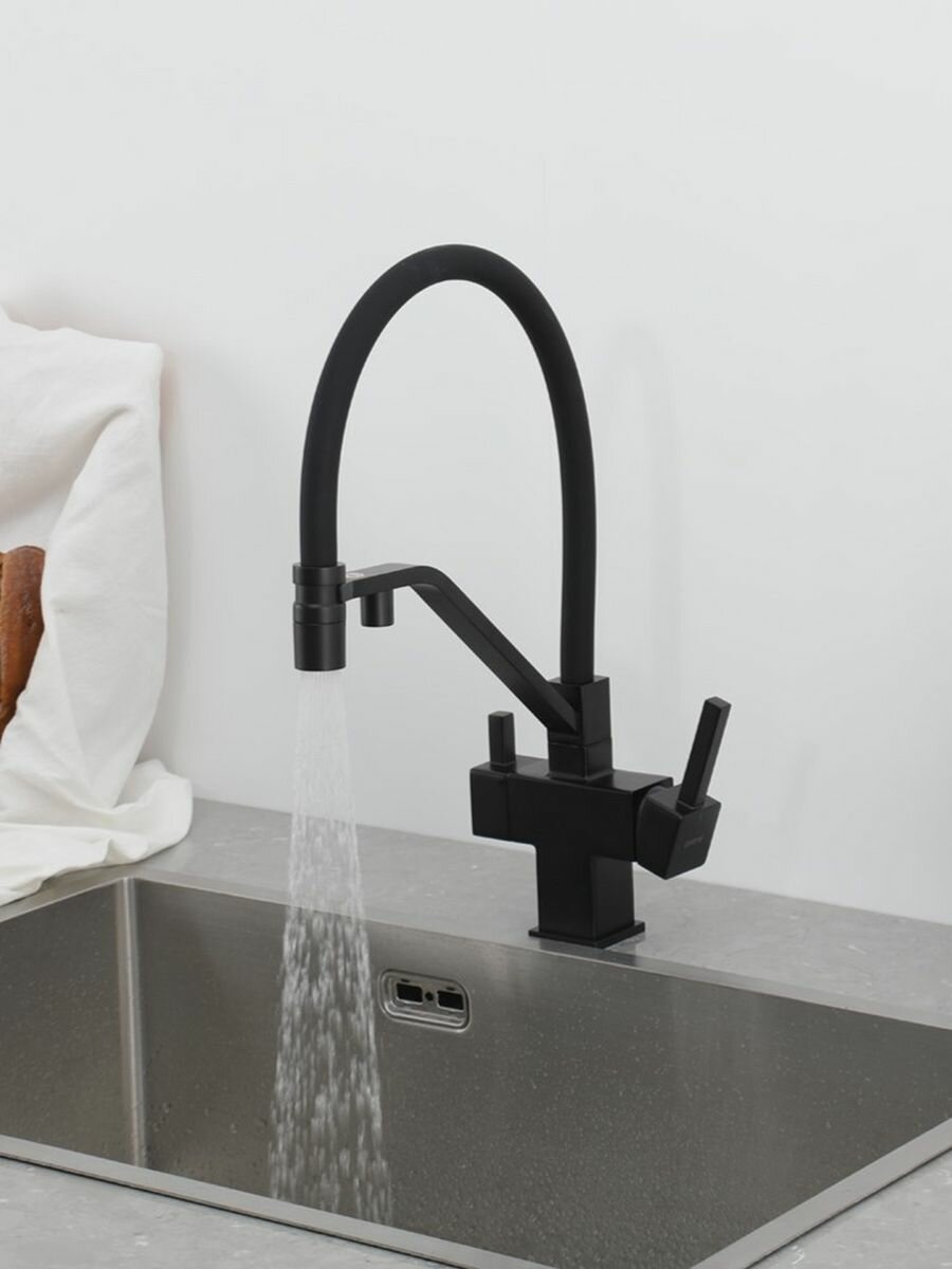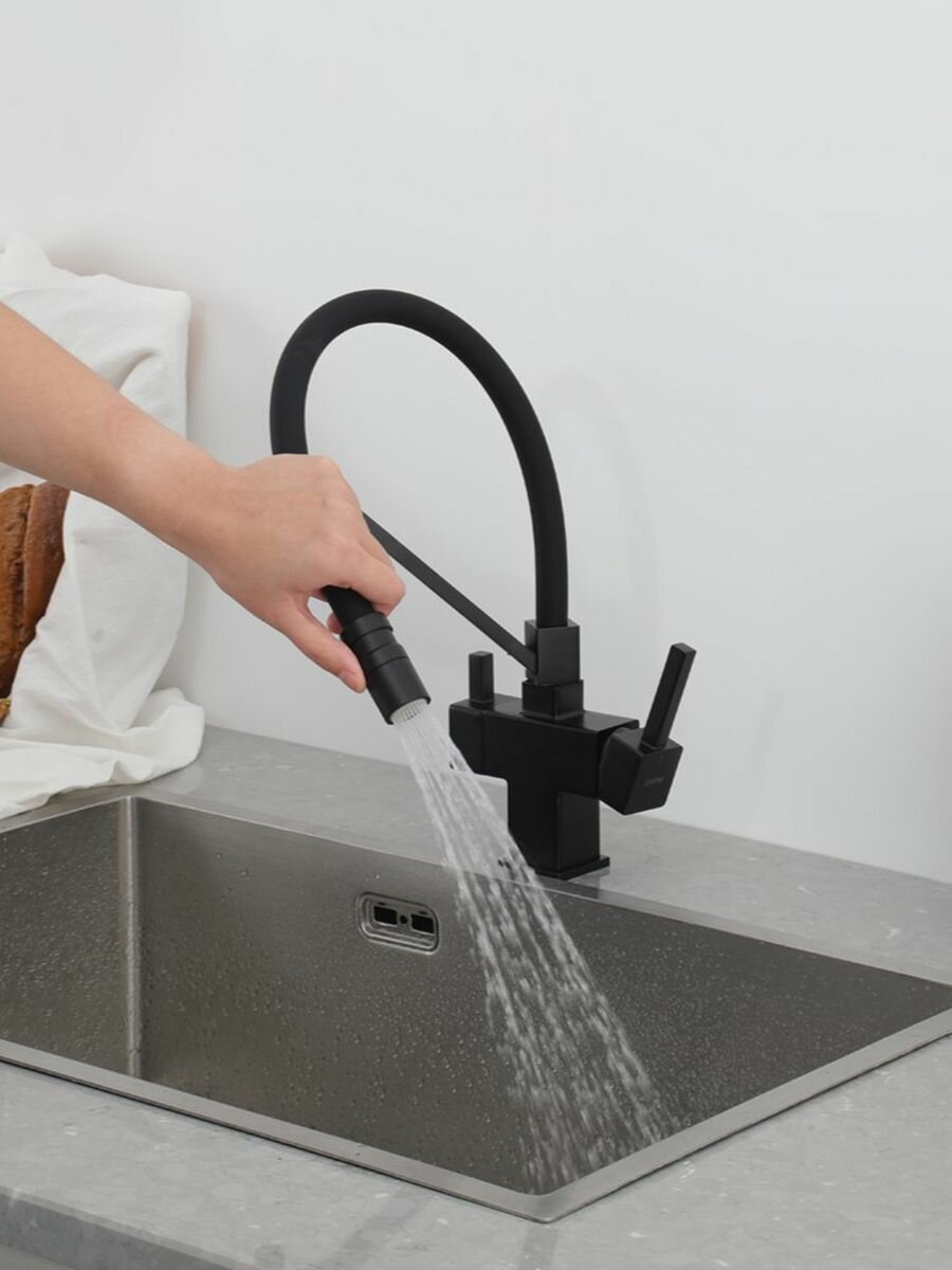 Купить Смеситель для кухонной мойки Gappo G95-66 G4395-66 с подключением фильтра питьевой воды и гибким изливом, черный