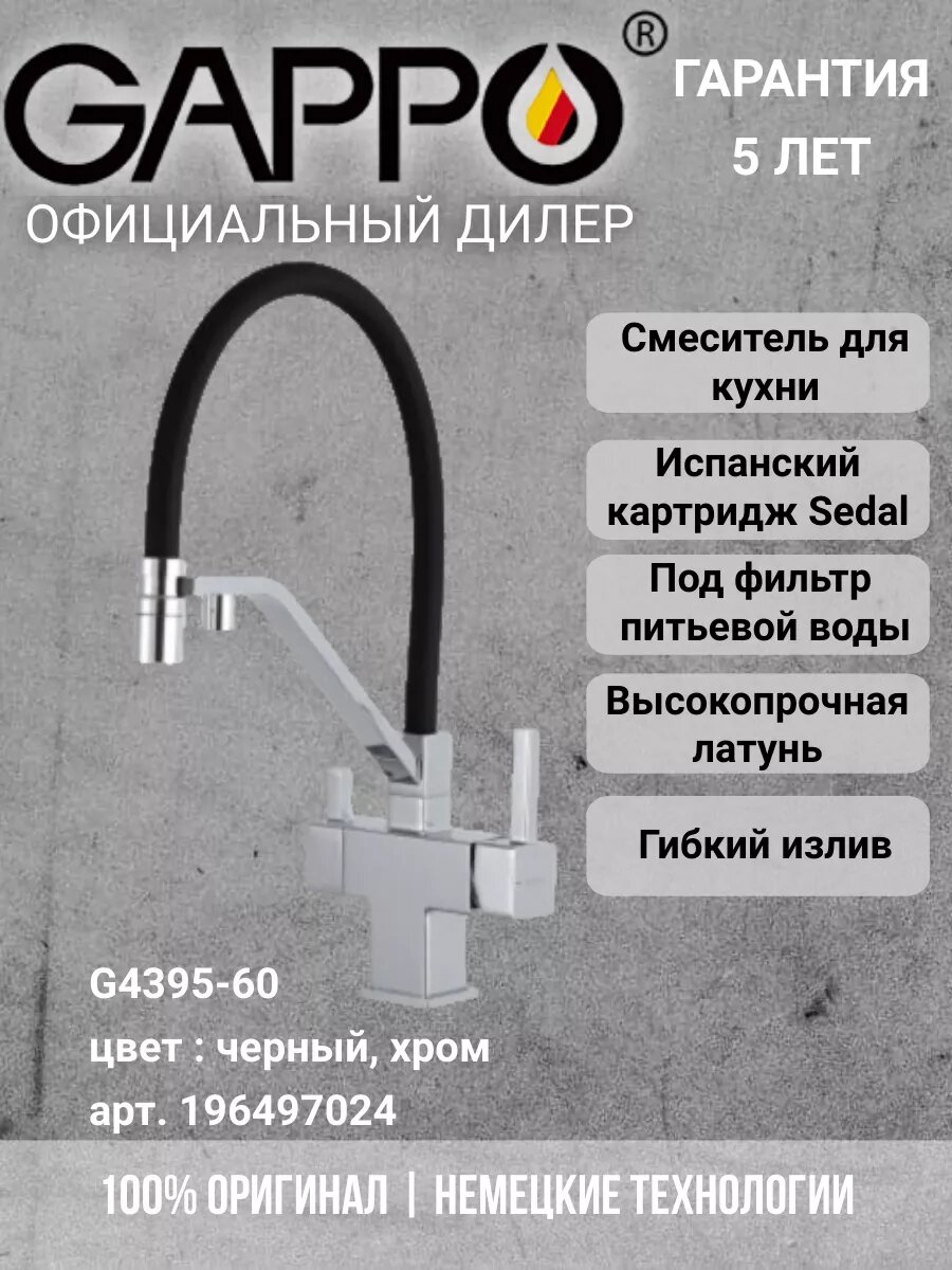 Смеситель для кухни Gappo G4395-60 с подключением фильтра, хром/черный
