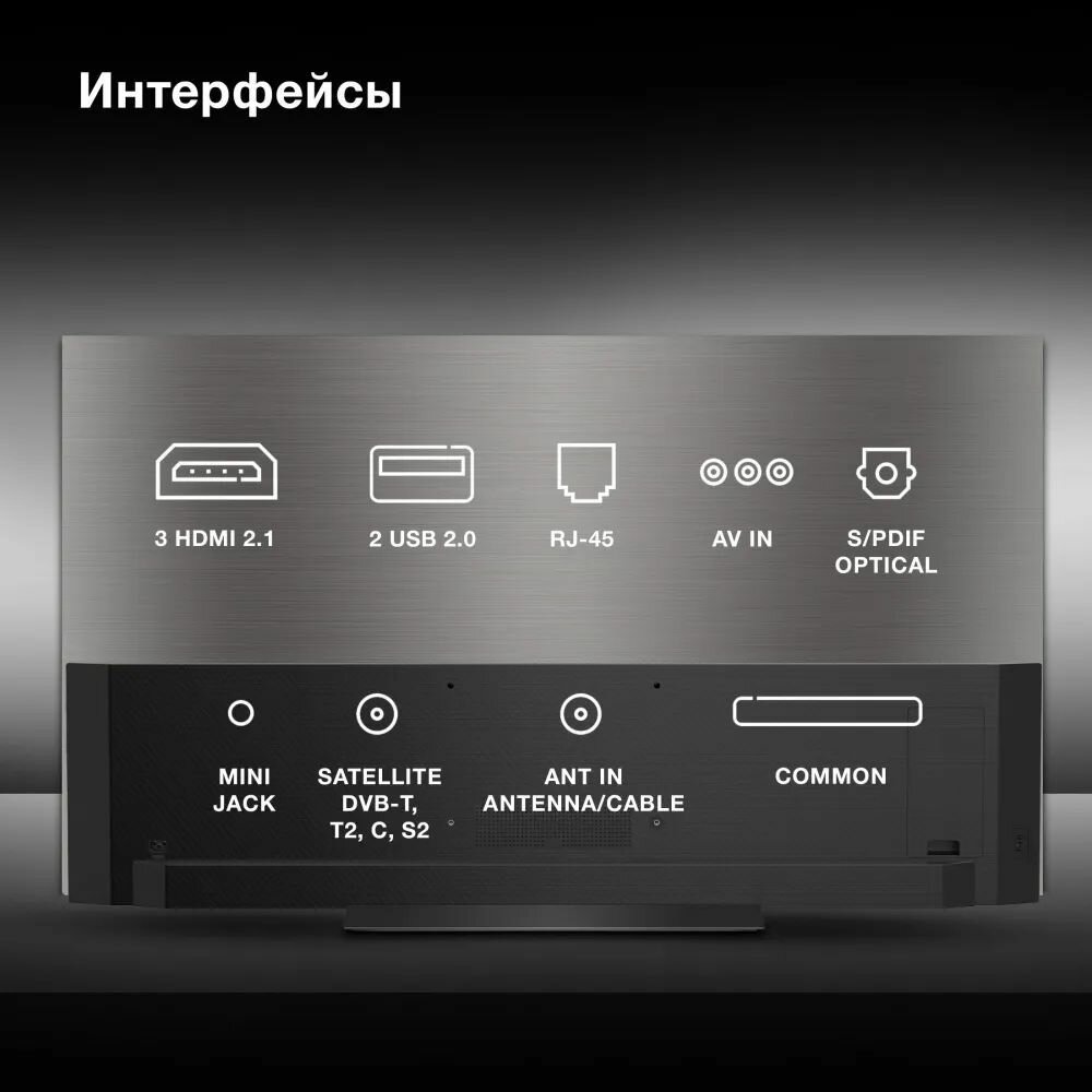 | Разъемы и интерфейсы | Ethernet - RJ-45 / USB Type-A x 2 / вход HDMI x 4 / выход аудио цифровой коаксиальный / выход на наушники / композитный видеовход / слот CI |