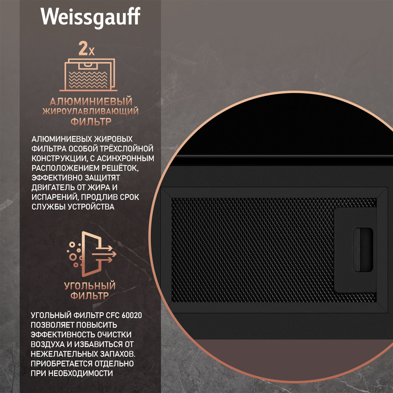 Купить Купольная вытяжка c Wi-Fi и инвертором Weissgauff Alcor TC BL Inverter Wi-Fi, Алюминиевый жировой фильтр