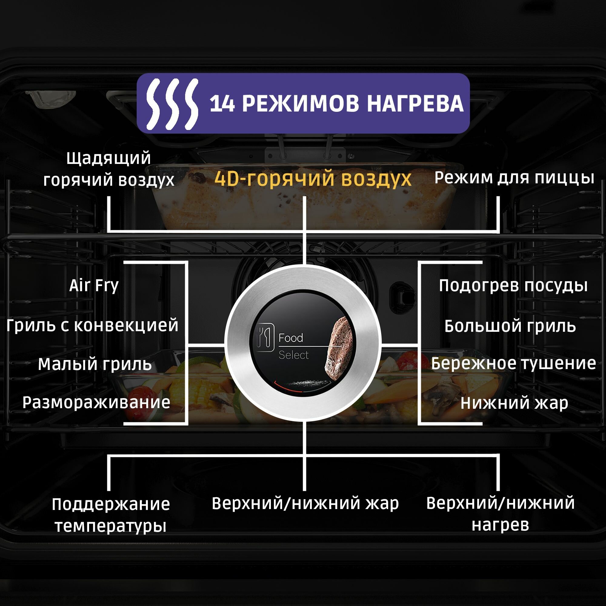 | Режимы нагрева | верхний нагрев, верхний нагрев + конвекция, верхний нагрев + нижний нагрев, гриль + конвекция, конвекция, нижний нагрев, нижний нагрев + конвекция |