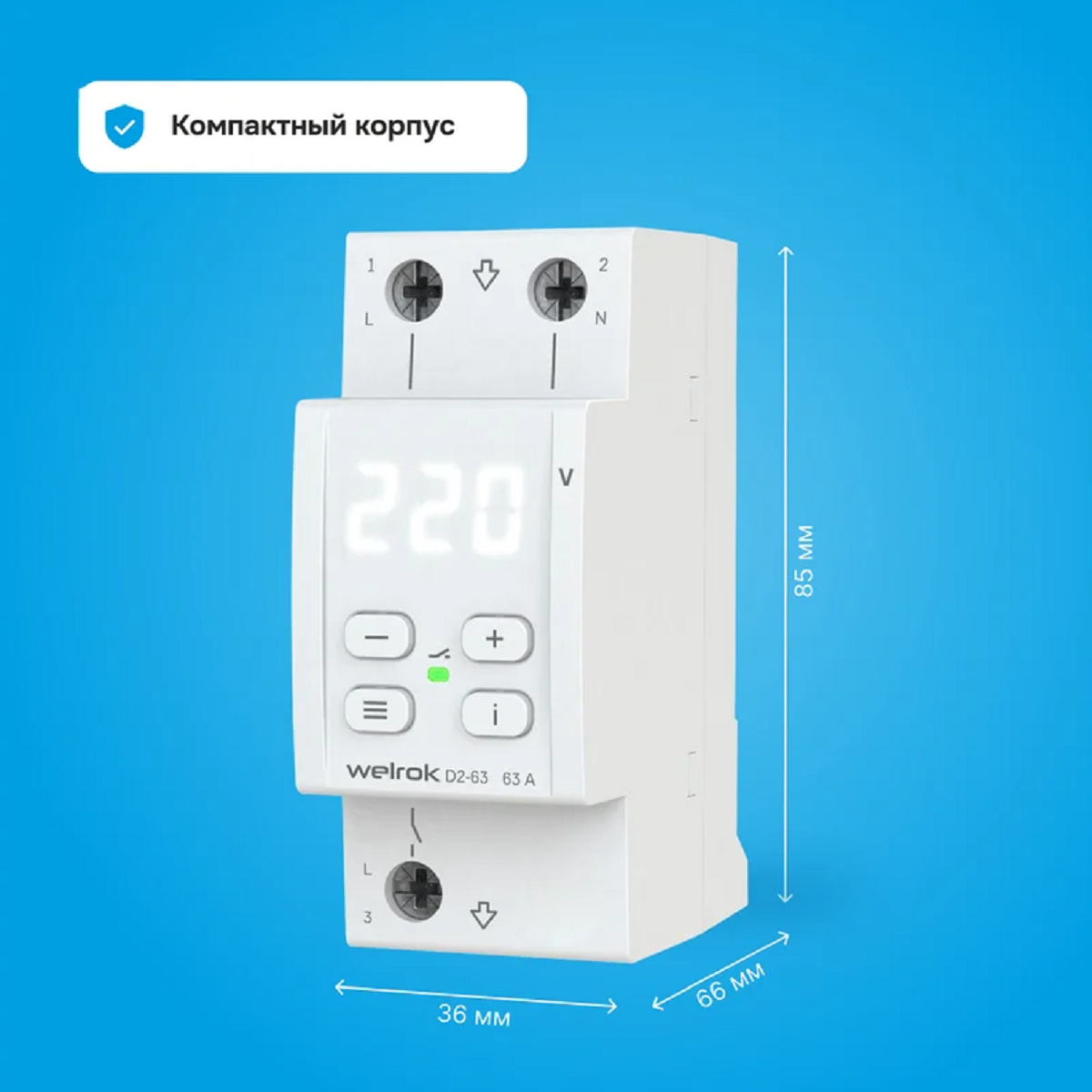 Welrok D2-63 bk реле напряжения63 А (max 80 A), 13 900 ВА