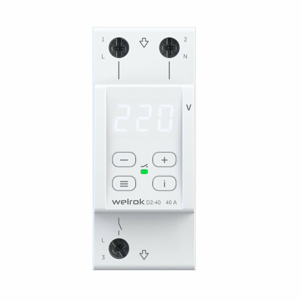 Реле контроля напряжения Welrok D2-40, однофазное, 40А, два модуля, термозащита, белая индикация