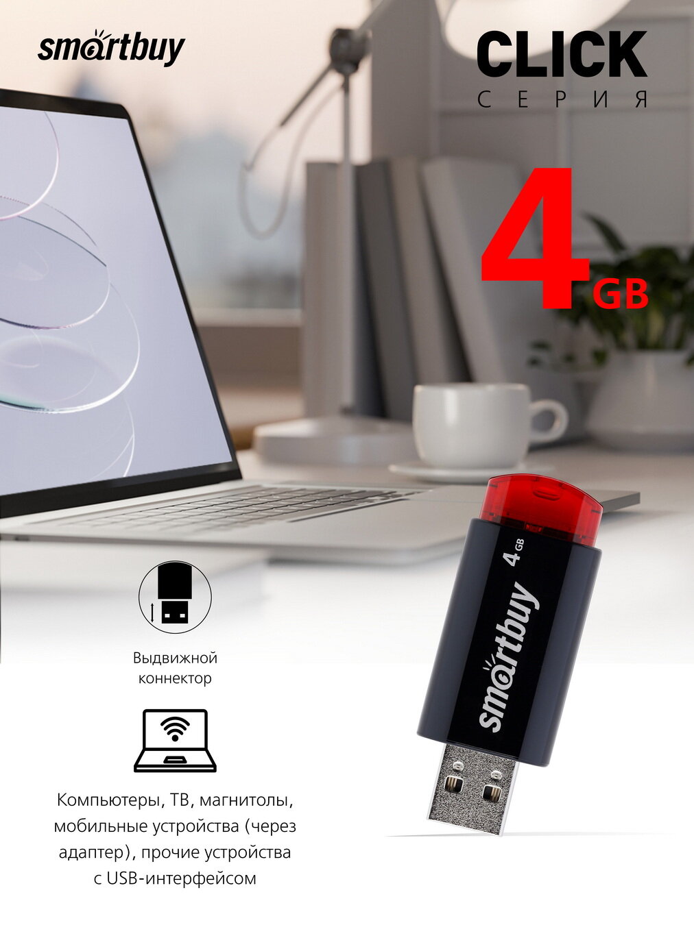 Флешка Smartbuy Click SB4GBCL-B 4 Гб Black
