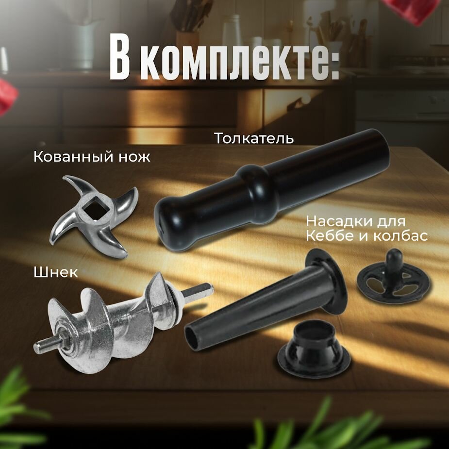 | Насадки | насадка для кеббе / насадка для приготовления колбас / насадка для шашлыка |