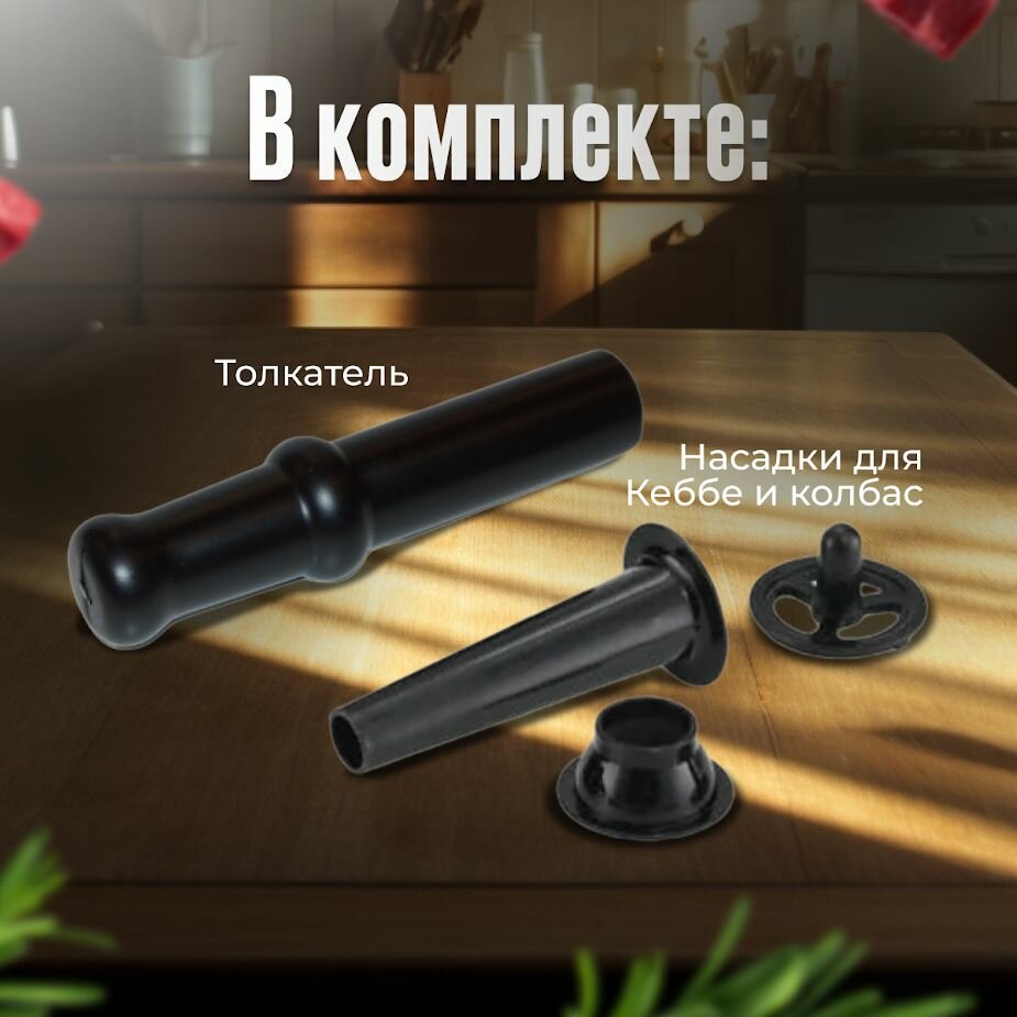 | Насадки | насадка для кеббе / насадка для приготовления колбас / насадка для шашлыка |