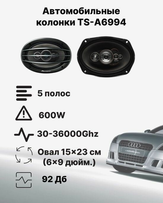 Автомобильные колонки Pioneer TS-A6994, коаксиальные, 5-полосные, 16x24 см, 120/600Вт, 4Ом интересное: