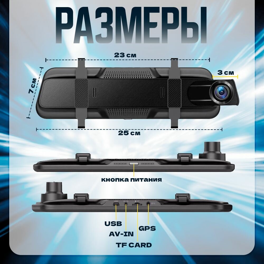 Автомобильный видеорегистратор сенсорный, зеркало регистратор с камерой заднего вида, с экраном FULL HD, отличный подарок