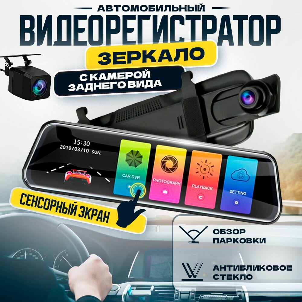Купить Автомобильный видеорегистратор сенсорный, зеркало регистратор с камерой заднего вида, с экраном FULL HD