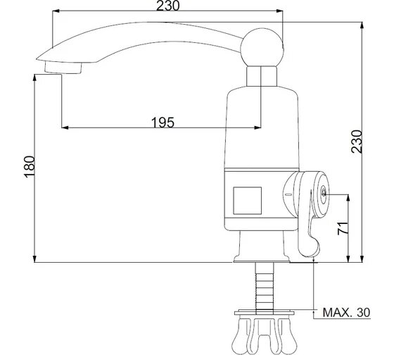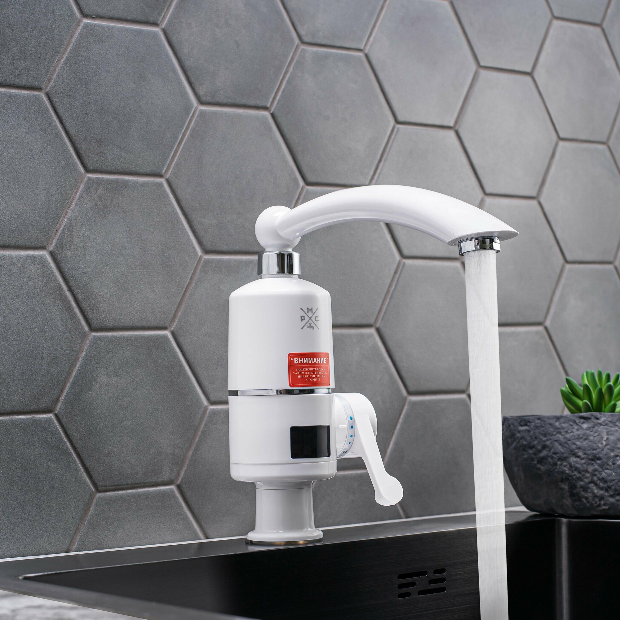 Проточный водонагреватель, РМС-ЭЛ02, с дисплеем, ABS-пластик, поворотный излив, гарантия