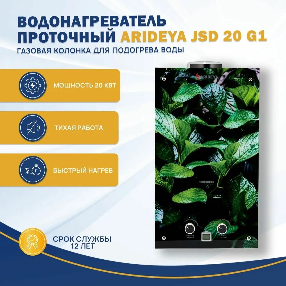 Купить Водонагреватель газовый проточный Arideya JSD 20 G1 (L) (Листья), колонка для подогрева воды