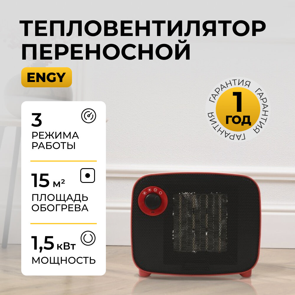 Тепловентилятор Engy PTC-321, керамический нагреватель, 1500 Вт, цвет красный
