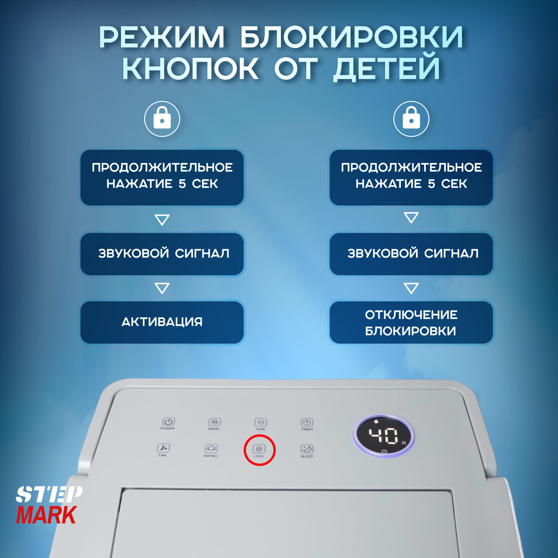 | Дополнительные функции | автоматическое размораживание / автоотключение при заполнении ёмкости конденсатом / автоотключение при сильном наклоне / ионизация воздуха / регулировка скорости вентилятора / режим сушки белья / установка времени включения / установка времени отключения |