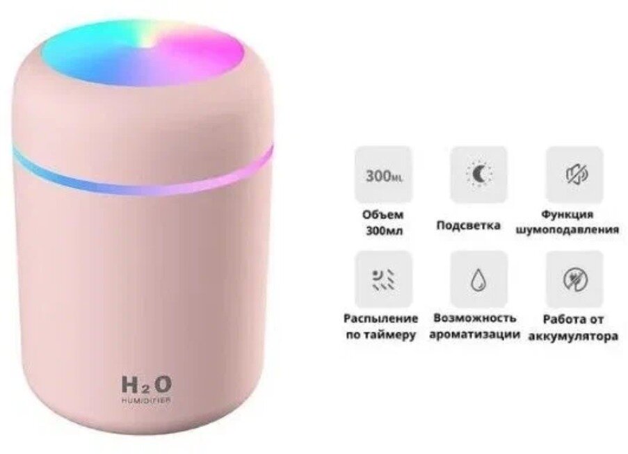 Аромадиффузор Humidifier Н2О Lider, ультразвуковой, с подсветкой, розовый интересное: